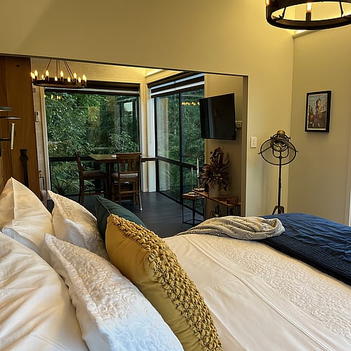 Designed with comfort and privacy in mind, Kauri Chalet features a king-size bed, and a spacious ensuite with rain shower. Complete with lush robes and quality linens, Nespresso and French Press coffee options, a variety of teas, with more supplies to ensure your stay is hassle free. We offer a BBQ for a self-catering option.